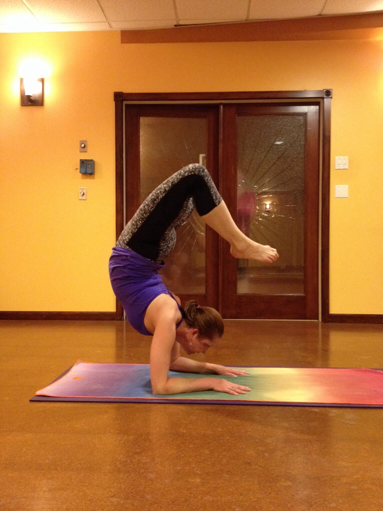 My goal of Yang this morning was to work on scorpion. Here is the end result and I think it looks pretty good. But I want a shot where I’m touching my head with my toes. I know my spine can do it, but I usually get hamstring cramps about 2 inches from my goal. 🙂