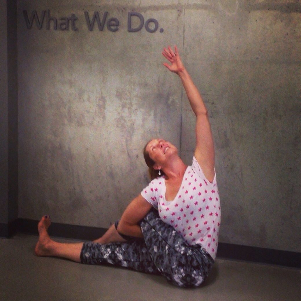 Spinal twists are so beneficial, warmed me up nicely on this weird weather day. Forecast predicts T-storms, very unusual for Seattle. Feels like summer to this Minnesota native. 🙂