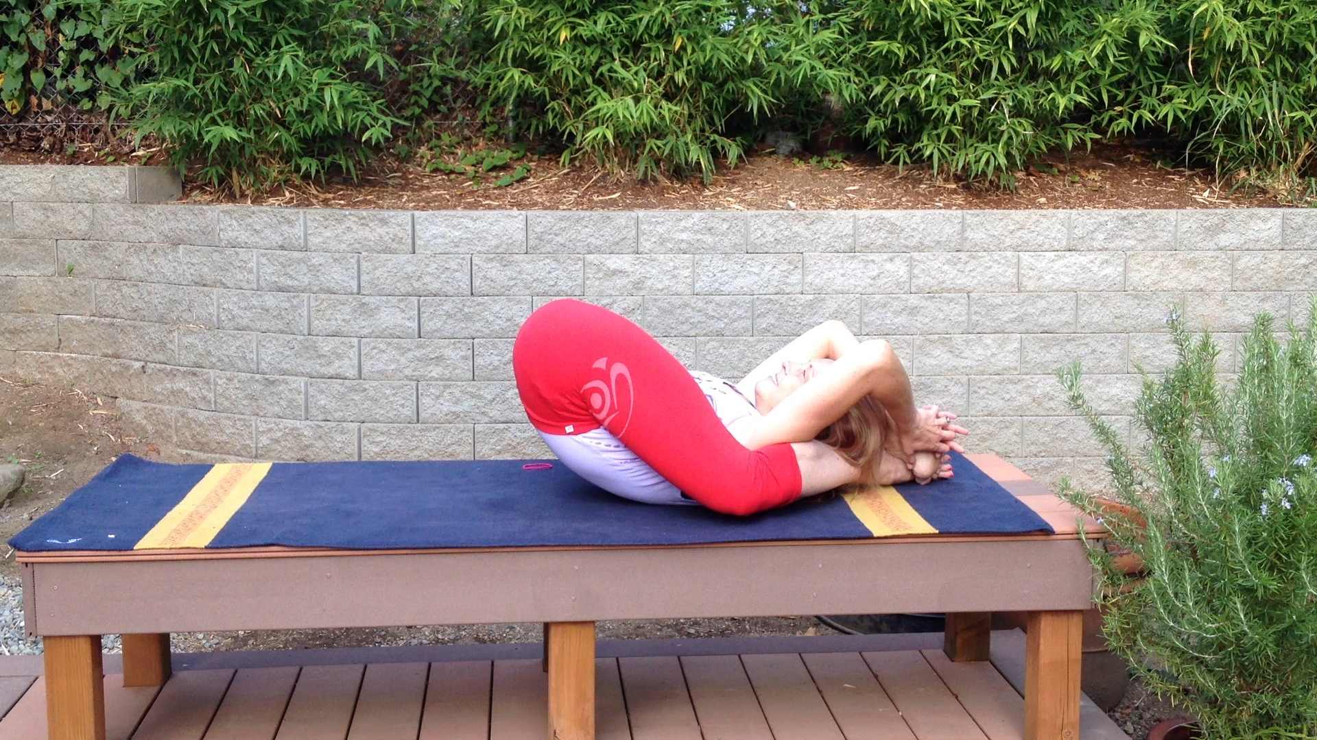and here is this morning’s attempt at feet behind head…. I very well may use one of these in the Challenge, unless I come up with a better angle.