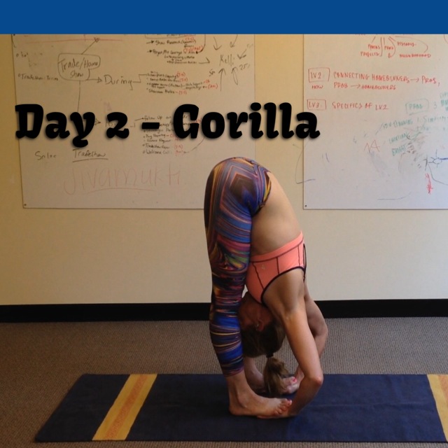 Day 2 is one of my favorite wrist releases (even recommended for carpal tunnel). I know my body appreciates this pose during Yang class 🙂 It is a calming pose, lengthening for the entire backside of the body. Releasing for the shoulders and neck.