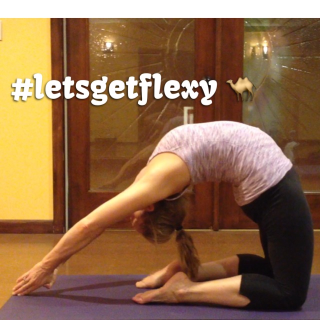 Camel Pose is a clearly a backbending posture. I think it is pretty accessible for most practioneers but you HAVE to warm up fully before backbending unless your spine is hypermobile. I consider my hypermobility a blessing for backbends. Hypermobility has its own disadvantages of course – I struggle with maintaining strength – it is very easy for me to sink into my joints. But I’m grateful for my body. I weigh more right now than I like but overall I am pretty dang blessed with all the cool postures I can assume. Thanks Universe 🙂