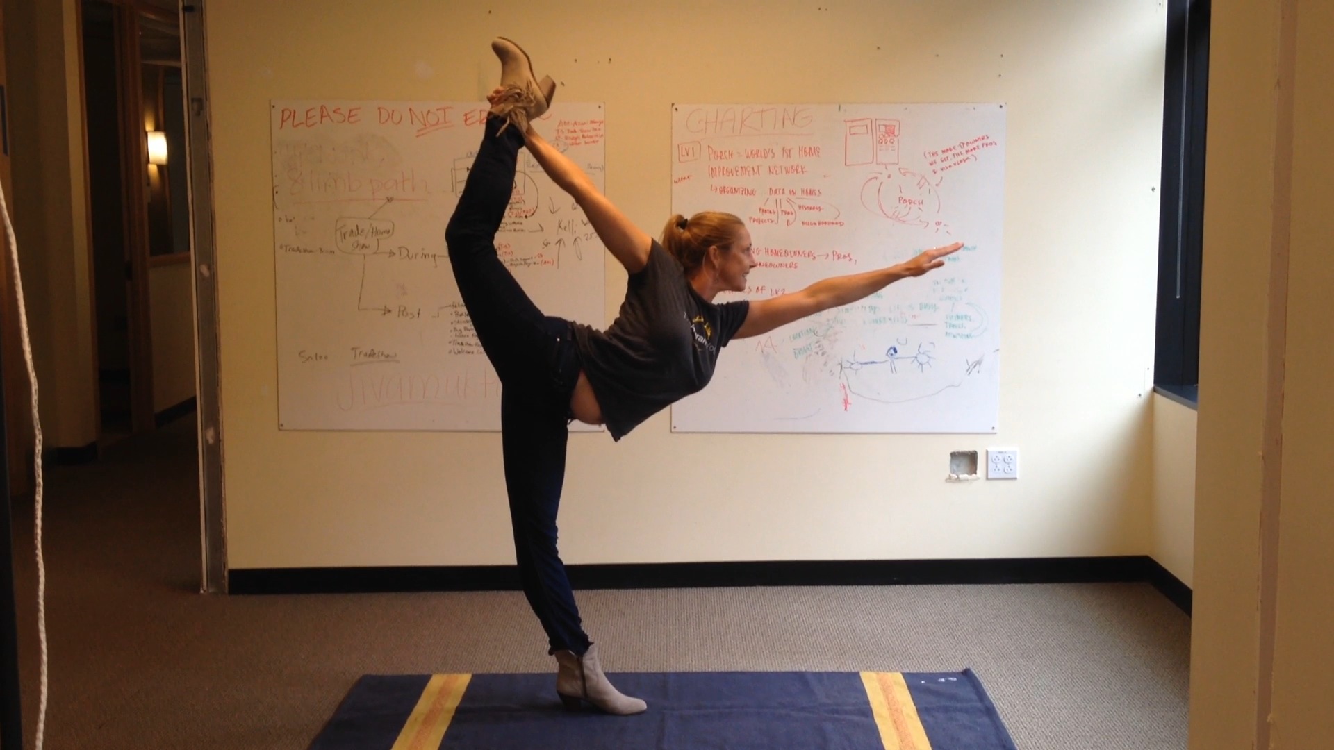 Here’s the shot of day for #letsgetflexy. Standing Bow – Natarajasana which I consider a quintessential yoga pose. I certainly have to warm up to do it – and focused on my drishti (mindless gazing point, in this case I’m projecting straight ahead from my third eye). Using a mirror really helps.