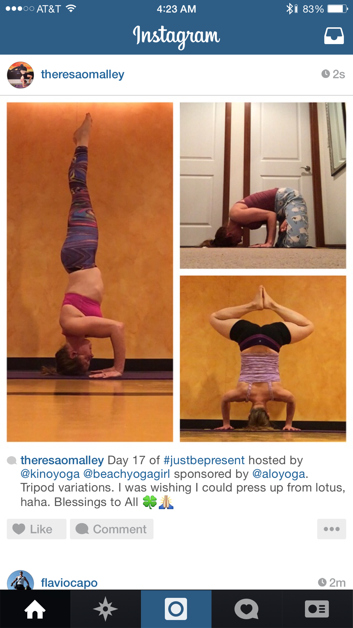 The pose of the day is Tripod. It’s funny, I don’t practice tripod a lot, I much prefer traditional headstand; I can hold regular headstand for long periods of time but tripod wears me out. I’m going to try to give tripod more attention – and alternate hand placement in general.